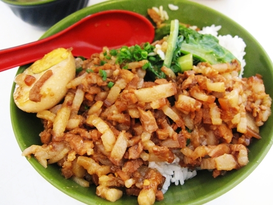 Hidangan ini salah satu menu khas di Taiwan. Kebetulan di seberang kampus dulu, ada kedai makan khusus menjual makanan siap saji ala Taiwan. Nah, ini salah satu favoritku! Padahal cuma nasi, di atasnya daging pork cincang dimasak kecap serta telur. Rasanya ngingetin dengan masakan mama di rumah â¤