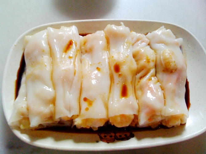 Selain isian telur, changfen itu bisa macam-macam juga variannya. Kalau di tempat dimsum Jakarta yang paling terkenal itu isi cakwe, udang dan ayam/babi charsiu. Kebetulan aku juga punya foto changfen dari kedai makan lain di Guangzhou: