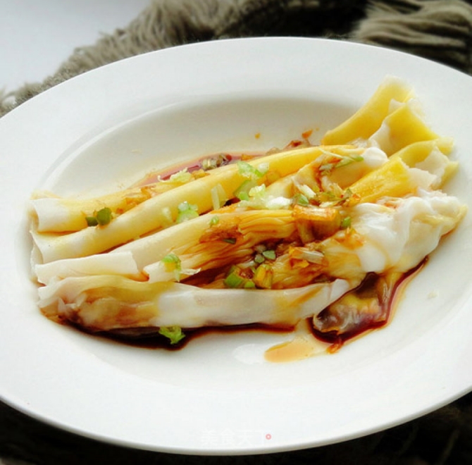 Changfen di sini isiannya sederhana, hanya menggunakan telur dan taburan daun bawang. Kemudian disiram kuah kecap asin yang hangat. Wah, endesss pisan deh. Ini ngetiknya aja ngeces-ngeces đ