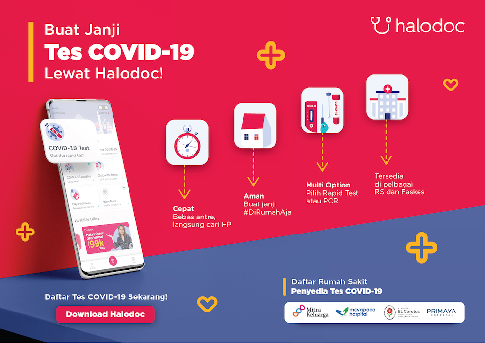 Daripada menerka-nerka, kita bisa konsultasi dengan dokter via online atau biar lebih tenang kita juga bisa langsung melakukan Rapid Test.