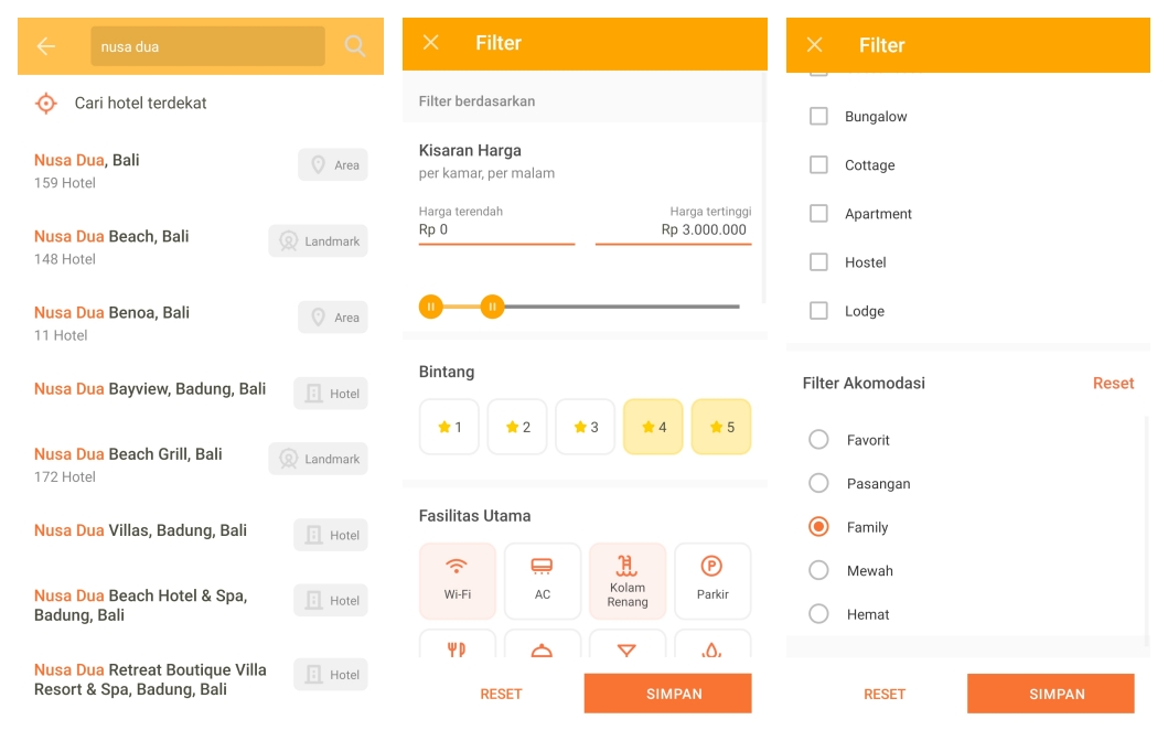 (3) Kita juga bisa pilih akomodasi sesuai destinasi yang diinginkan, misalnya kalau untuk perjalanan bisnis mungkin bisa pilih yang "hemat", untuk honeymoon bisa pilih yang "pasangan".